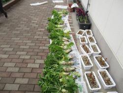 2年生が育てていた「かぶ」「ほうれんそう」「こまつな」「はつかだいこん」の4種類の野菜が続々と収穫時期を迎えています。ゆっくり観察した後、収穫をしました。「虫に葉っぱを食べられちゃった」「おいしい葉っぱってことだよ」「今日のお味噌汁に入れてもらおう」と話しながら、大切そうに持ち帰りました。