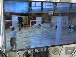 2 体育館に上履きを残してプールに移動します。安全を考慮して通路にはマットを敷いています。
