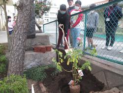 今日は一般社団法人横浜すぱいすの北村様から、横浜開港150周年のバラ「はまみらい」をいただきました。とても貴重なバラで、なかなかお目にかかれないバラだそうです。北村様はこのバラと持続可能な開発目標(SDGs)を関連付けながら、SDGsの17番目の目標のパートナーシップについて子ども達にお話をしていただきました。「はまみらい」は飼育栽培員会の子ども達が体育館横の通用門脇に植えました。ぜひご覧ください。