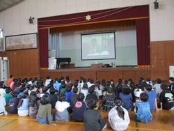 3月5日木曜日、今年度の国際理解教室最終日にテレビ放送でお別れ会を行いました。今年度の国際理解教室はガーナの先生で、ガーナの言葉や気候、学校のことや服装など、文化の違いをたくさん教えていただきました。英語の先生との授業は修了式前日まで続きますが、子どもたちは楽しく英語を学んでいます。今日の会では、代表児童がお別れのメッセージを伝え花束を渡しました。とても温かいお別れ会になりました。