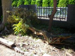 台風が通過した後、学校の様子を見ましたが、ほとんど被害はありませんでした。体育倉庫脇の木の枝がおれてしまっていたことと、小枝が落ちているところがあったくらいです。