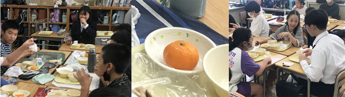 校長室より「小中給食交流・冷凍みかん×寺尾中生徒会」