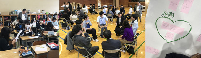 授業後には研修会、中学校を卒業するときにどんな姿になってほしいかを話し合い、共有しました。ポスターにまとまったのは「感謝」や「自主性」、「思いやり」につながる姿です。