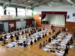 今年も書初めを体育館で行いました。「世界の国」にチャレンジしました。字のバランスに苦戦しながらも目の前の紙にじっくりと向き合う姿が見られました。