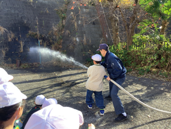 社会科の学習で元石川消防出張所に見学に行きました。放水体験やAEDを用いた救命講習など普段はできない経験をさせていただきました。質疑応答の時間では、子どもたちから次々に質問が上がり、消防士の緊急事態への準備や工夫など教科書には載っていないことも学ぶことができました。