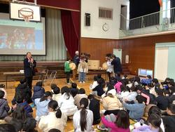 昔から牛込地区に伝わる獅子舞のお祭りについての話を保存会の方から聞きました。祭りがどのように始まったのか、どのような思いで受け継いでいるのか等、詳しく学ぶことができました。また、各クラスの代表者が獅子頭をかぶり、太鼓をたたく貴重な体験もさせていただきました。