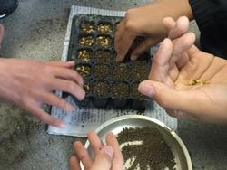 総合的な学習の時間に、米づくりに挑戦することになりました。その活動の始まりとして、地域の方のご協力のもと、苗づくりをしました。種もみの様子をじっくり観察しながら、どのように成長していくか楽しみしている様子が見られました。