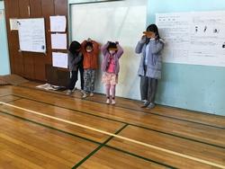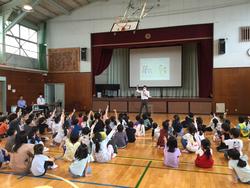 体育館に前クラスが集まって、学年集会を行いました。2年生は、これまでに体育館に学年全体で並んだことがありませんでしたが、列を整えて静かに話を聞くことができていました。2年生になって「自分」のことだけでなく「まわり」のことにも意識を向けていこうね、との話がありました。お話の後には、クイズやもうじゅうがりで盛り上がりました。
