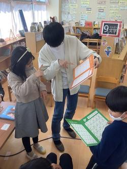 2月26日に鶴見大学文学部元木研究室と有志一同のみなさんが、学校図書館で出前授業をしてくれました。まず「聴覚障害について知ろう」というテーマでお話していただき、次に障害と病気の違い、「障害」「障碍」「障がい」「しょうがい」という表記の違いについて聴覚障害とは、とお話を伺いました。最後に、鶴見大学の学生さんが子ども達のために選書して、それぞれ読んだら分かるクイズを作成してくれた聴覚障害関連の本を各自見ました。本は3月20日ごろまで学校図書館に展示しています。