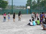 今年度最初の長縄跳び集会。3分間で何回跳べるか!慣れている高学年は、「ハイ!ハイ!ハイ!」の掛け声と共に児童が次々と回っている縄の中へ入っていきますが、低学年特に1年生は、回っている縄の中に入っていくことも難しい状況です。ペア学年で互いに見合いながら応援し合いました。半年後、どこまで記録を更新できるでしょうか。クラスで心を一つにして目標回数を目指しましょう。