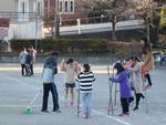 まだ吹く風は冷たく感じますが、今日も元気に子どもたちが「おはスポ」に集まりました。校庭には、紅白の梅の花が花開いています。そして、グランド整備をしている先生のもとに、竹馬レディースが集合!何やら楽し気に話をしていました。使った竹馬もきちんと元の場所に戻っていました。ほっこりシーン満載のおはスポでした♪