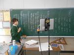 先生方は、子どもたちのいない教室で、タブレットに向かって授業を行いました。大型テレビに映し出されるみなさんの笑顔が先生方の活力になったようです。