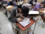 新しい教科書をもらいました。真新しい教書を手に取り、学習への意欲が高まったようです。