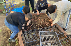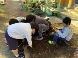 6月ごろに植えたサツマイモの収穫をしました。掘り起こした際に「でっか!」「土のにおいがする。」「紫色だ!」など、収穫時に感じたことを呟きがたくさん見られました。