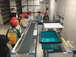 生活科の学習で横浜市立中央図書館へ見学に行ってきました。今年度2回目となる中央図書館見学では、図書館職員の方の話を聞くだけでなく、図書館の裏側に実際に入らせていただくことができました。