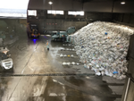 資源選別センターでは、運ばれてくる資源ごみの量に驚く子どもたち。職員の方から、ビンは色ごとに手作業で分けていること、分別していないごみはリサイクルされないことを教えていただきました。子どもたちは「手作業で分けてくれているなんて知らなかった。」「中身が残っていると作業が大変になってしまうから、洗って捨てないといけないね。」と学びを深めている様子でした。