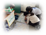 これまで、2年生が牛乳パックやカップ、空き箱などの身辺材料を活用したおもちゃづくりをしてきました。自分の作ったおもちゃで『たくさんの人に遊んでもらいたい』との想いから、5組全体を招待したおもちゃランドに発展しました。12月12日(金)の当日は全てのおもちゃコーナーに行列ができるほどの大盛況!可愛い景品やおみやげももらえたお客さんたちは大満足でした!ふだん、5組全体で集まることがなかなかありませんが、今後もこのような機会が増えていくことを願っています。
