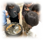 12月24日(水)に、晩夏に収穫したトウモロコシで、ポップコーンパーティーをしました。ホットプレートの上で、ポンポンとはじける様子を見て、「たまごから産まれたよ!」とか「白いお花が咲いたみたい。」と子どもたちは喜んでいました。できあがったポップコーンを塩味で、みんなでおいしくいただきました。