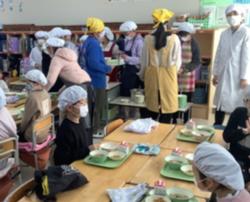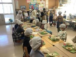 たてわり班で活動する機会を年間に位置付けています。本日は、たてわり班での給食が実施されました。高学年を中心に役割を分担し、身支度を整えて待ったり、順番に給食を取りに行ったりする姿が見られました。