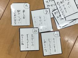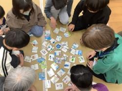 3年生が総合的な学習で、まち探検を通して集めた情報をもとに手作りの「カルタ」をつくりました。本日は、地域の方に自治会館に来てもらい、子どもたちと一緒にカルタをして楽しみました。