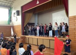 先日、運動会のスローガン発表や応援団の紹介が行なわれ、運動会に向けての活動が多くなってきています。応援集会では、赤・白の応援団がステージ上で声を出し、本番に向けての意欲を高めていました。