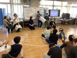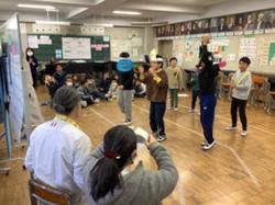 森中学校に行き、学校の様子を中学生に教えてもらいました。学習をしている様子やいろいろな教室を見学したり、部活動を体験したりしました。