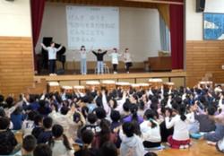 9日、音楽朝会で「元気勇気ちから」を歌いました。4年生の代表児童が手話を説明し、全校で手話を取り入れながら歌うことができました。6年生は、音楽で学習してきた合奏「勇気100%」を昼休みに校内発表しました。皆で、心を合わせて演奏しようとする気持ちが伝わってきました。