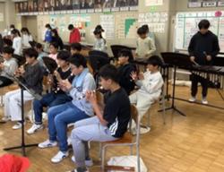 5年生が総合的な学習において、みんなが楽しめるようなお店(縁日)を開こうとしています。学習の過程で、縁日の雰囲気には曲があった方がよいという意見から、地域の方に、太鼓のリズムの基本や曲作りのノウハウを教えてもらいました。基本のリズムを少し工夫すると、楽しいメロディになりそうで、これからの子どもたちの音作りが楽しみになりました。