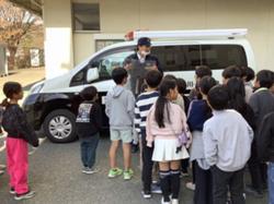 3年生が社会科の学習で杉田消防署を見学しました。各クラスでグループに分かれ、消防車の様子、放水体験、消防士の訓練について話を聞いたり質問をしたりして学んできました。