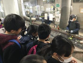 焼却工場と資源選別施設を見学しました。リサイクルやごみの処理の様子を興味深く見学する姿が見られました。