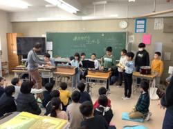 音楽の時間に練習した「ハイ・ホー」の合奏を昼休みに他学年へ発表しました。友達の音をよく聴きながら、心を合わせて楽しく演奏することができました。