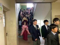 6年生が卒業する日。全校で「卒業生を送る会」を行いました。校舎内を6年生がまわり、全校で6年生の卒業をお祝いしました。5・6年生は、この後、卒業式に参加しました。中学校でのがんばりを期待しています。