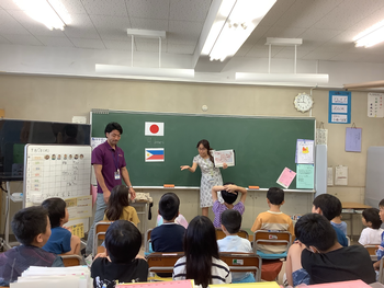 外国語講師と国際理解の学習をしました。フィリピンのお金や食べ物、有名な場所についてクイズを交えて楽しく学習しました。