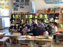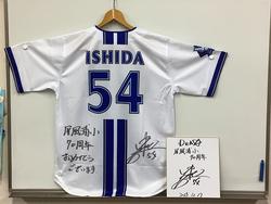 17日(水)、創立70周年を記念して、本校の卒業生で、現在横浜DeNAベイスターズで活躍中の石田裕太郎選手が来校してくださいました。児童会目標「ブレイブ(勇気をもって挑戦すること)」に関して、目標をもって取り組み続けたことやプロ野球選手になってからの話などをしていただき、子どもたちが考えた質問にも答えてもらいました。その後は、各教室等をまわり、記念撮影や握手、ハイタッチなど、子どもたちとの時間を共にしていただきました。