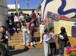 4年生が屏風浦駅前のトレーラーハウスで写真展を開きました。総合的な学習で、屏風浦のまちを捉え直し、子どもたちの視点で「まち」を写真に表して表現しました。子どもたちは、「ぜひ見ていってください。」と元気に呼びかけていました。