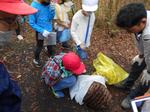 子どもたちみんなやる気満々で出発し、茅ケ崎公園に到着したと思いきや、偶然にも大きなスズメバチの巣を駆除する場面に遭遇しました。安全な場所へ一時避難して見学しました。初めての光景に驚いた様子で眺めていると、駆除した巣を間近で見せていただき、思わぬ体験ができました。