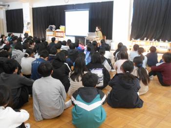 同じ時間に学校では6年生の子どもたちが「命の授業」をしていました。区役所の助産師さんたちに来ていただいて、生まれてからここまでの成長についてや思春期に気を付けることなどお話をしていただきました。「おはなしピエロ」の方の朗読もあり、子どもたちは真剣に話を聞き、自分の成長について考えるよい時間になりました。