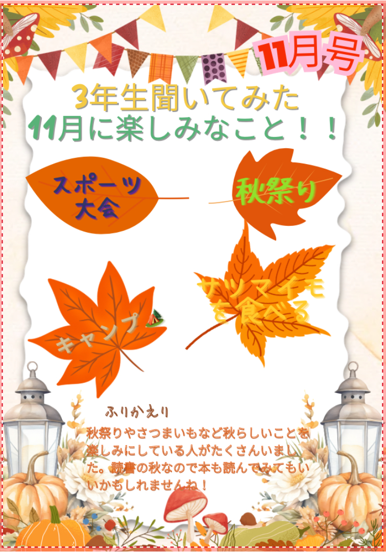 また、給食は「茅ケ崎東小スペシャルメニュー」です。6組の子どもたちが秋のメニューにふさわしいネーミングを考えて、紹介の動画も作ってくれました。