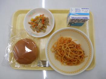 今日は、冬休み明け最初の給食です。子どもたちも楽しみにしていました。調理員の皆さんは寒い中子どもたちのために調理をしてくださっています。調理室は本当に寒く、今日は8℃前後だったそうです。今日の献立は、牛乳、チーズパン、スパゲッティミートソース、ごぼうソテーです。みんなで感謝しながらおいしくいただきました。