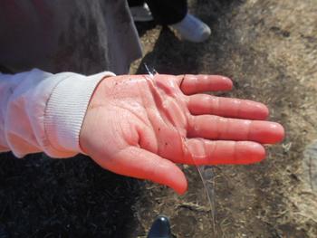 昨日今日と北風が吹いていたこともあり、朝はだいぶ寒く感じましたが、子どもたちは元気いっぱいです。霜柱を見つけては踏んで感触を楽しんだり、霜柱をビニル袋に入れて集めてきたり。休み時間には、ビオトープに集まってきて、氷を探していました。この時期にしかできない遊び、体験です。子どもたちの好奇心、学びにはいつも感心させられます。