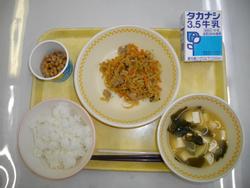 ▲今日の給食は「ごはん、豚肉と切り干し大根の煮物、みそ汁、納豆、牛乳」でした。今日のパクパクだよりでは、納豆の作り方の説明でした。学校の給食で出てくる納豆のたれは、給食室でだしを取って、しょうゆとみりんを入れて作っている自家製です。▲算数少人数教室の前の草花が替わりました。今は「ホタルブクロ」という草花です。ベルフラワーとも言われているようです。▲