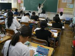 ▲5年2組は、習字です。「しんにょう」に気を付けて「道」という字を練習しています。▲6年1組は、音楽です。「カノン」という曲を、ソプラノリコーダーで演奏しています。▲
