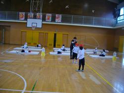 ▲2年1組と2年2組の合同体育です。体ほぐしの色々な運動に取り組んでいます。▲