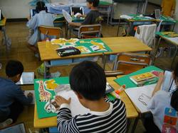 ▲2年生の図工は、ズーラシアで見てきた動物を書いています。たくさん描いた動物を、大きな画用紙に貼っています。▲左の写真は2の1、右は2の3です。▲