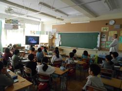 ▲3年1組は、音楽です。打楽器を使って、自分たちでリズムを作り、発表するようです。グループごとに練習しています。▲3年4組は、山崎先生と道徳です。物語のビデオを見て「正直な心をもって生活するには」について、考えています。▲