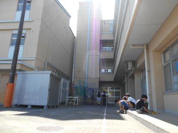 6年生の子どもたちは、算数の学習の発展で、学んだことを生かしながら計算で校舎の高さを求める活動をしていました。グループでいろいろ相談をしながら進めていました。意欲的に姿が見られ、どれだけ正確な数値に迫れるか楽しみです。