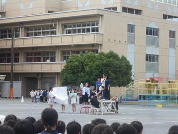 今日の朝会は校庭での集合朝会でした。運動会へ向けて、運動会の時の場所に並んでの朝会です。プロジェクト委員会の皆さんから、代表委員会で話し合われた運動会へ向けての取組について話がありました。みんな一人一人が思いをもって運動会を作っていこうという気持ちが伝わってきました。