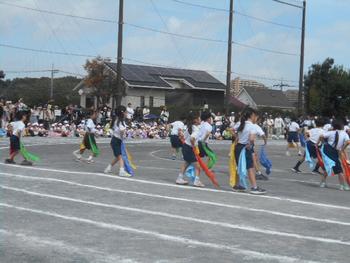 3年生の演技は「キラキラ笑顔で!! Nanairo Flags」みんなでそろった旗の動きがその音から伝わってきました。迫力がありました。練習の時から3年生の演技を見て、「やってみたいなぁ」というお話を何度か聞きました。