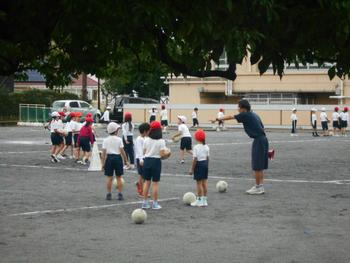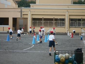 2年生は校庭で体育の「ボールけりあそび」です。学習の導入部分ですが、様々な場があって、子どもたちはそれぞれボールけりを楽しんでいました。