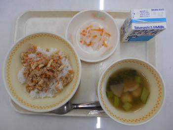 今日の給食は、お正月にちなんだ献立でした。白玉ぞうに、なますなどこういう行事食が出されるところも給食のよいところです。